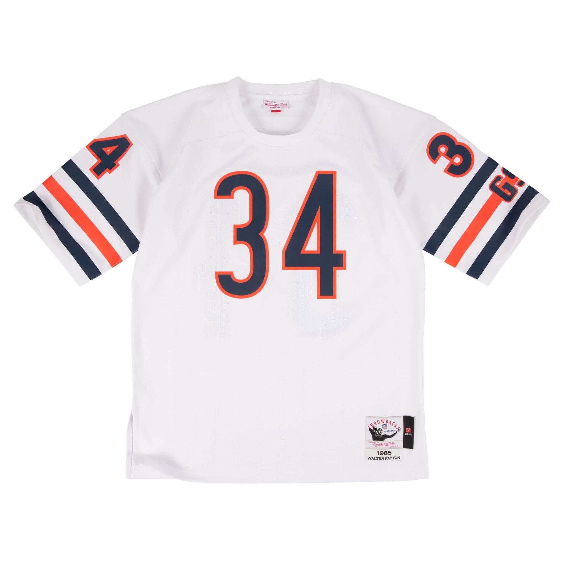 Walter Payton was one of the most talented running backs to play in the NFL. With two MVP Awards in the NFL, Payton became a Super Bowl champion in 1986 and would set records in most rushing yards (16,726) and touchdowns (110) before retiring the following season. He was inducted into the Football Hall of Fame in 1993 and the Bears would eventually retire his #34 jersey. 100% polyester mesh body. Screen-printed logos, name and numbers. Screen printed GSH on left sleeve in honor of owner George S. Halas, owner of the Bears who passed away in 1983. .